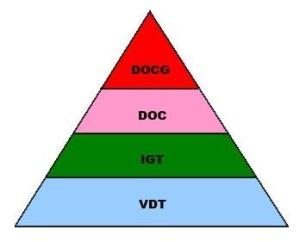 自1963年起,为保护葡萄酒的原产地的价值和发展,意大利政府农业部葡萄酒司(Ministero delle Politiche Agricole, Alimentari e Forestali )对本国生产的葡萄酒进行分级管理。1963年的分级管理只制定了两个等级---DOC和VDT,1980年,在政府的主导下,增加了DOCG等级,1992年又增加了IGT等级。