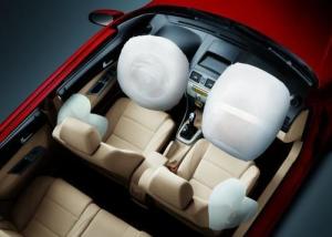 一些储存气体的发生器设有与一个或多个引燃器结合的小型气体烟火式装置。这个装置对输向气体发生器的气体进行加热,依靠这种加热方式提高气体在安全气囊中的压力。在双级储存气体式气体发生器中,其单级气体发生量主要由汽车本身规格与整车制造商的性能评判标准决定。在双级气体发生器的第一级与第二级气体发生量之比为70:30、60:40和50:50,对每种车型需要进行分析并通过试验决定采取什么样的组合方式最适合整车制造商的设计需求目标。 安全气囊的气体发生器(Inflator),由发生器体,引药,火药,点爆装置,线束连接器组成。有些发生器还有压缩空气。作用时,ECU发送讯号,通过线束进入点爆装置,产生火花引爆引药-火药瞬时产生大量气体(或者给压缩气体巨大的压力),冲破发生器体中隔层,经由体上的孔冲入囊带(bag),巨大的压力使囊带挤破气囊盖板(盖板上有特殊设计的撕裂线,此处非常薄,容易冲破),充气成型。