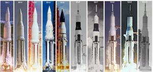 土星5号是三级火箭,由S-1C第一级、S-2第二级、S-4B第三级、仪器舱和有效载荷组成。第一级长42米,直径10米,到尾段底部直径增大到13米。尾段上装有4个稳定尾翼,翼展约18米。第一级采用5台F-1发动机,推进剂为液氧和煤油,总推力达33350千牛(约3400吨力)。2个10米直径的铝制推进剂贮箱用桁条和隔框加强。第二级长25米,直径10米,采用液氧液氢推进剂 ,共用5台J-2发动机 ,真空总推力达5109千牛(521吨力)。第三级采用土星1B号火箭的第二级,仪器舱也和土星1B号的相同 。土星5号火箭全长110.6米,起飞重量2930吨,采用惯性制导系统。运载能力为127吨(低轨道),48.8吨(逃逸轨道)。土星5号火箭从1967年9月至1972年7月进行飞行试验,其中有7次作载人登月飞行,成功6次,先后将12名航天员送上月球。