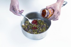 辣椒酱取之于优等朝天椒。经过淘洗、精拣、破碎熬制而成。因此色泽鲜红,辣椒酱的红色来自辣椒的本色。(绝不添加任何色素)在烹调过程中具有上色、感官良好的特点,使人有一种强烈的食欲感。