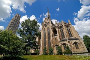 Heinz Memorial Chapel学校拥有哥特式、希腊卫城式、文艺复兴式等风格的古典建筑。标志性建筑Cathedral of Learning(学习堂)有42层,高535英尺(163米)是始建于1925年,落成于1937年的哥特式建筑,是世界第二高教学大楼。除了是整个匹大主校区中心地标之外,也是著名观光景点。在1925年建造这栋大楼时,有个针对鼓励当时学童的募款计划叫做"帮匹大买一块砖"(Buy a Brick for Pitt),每个学童捐献十分钱(one dime)以及写一封信给匹大,说明他们是如何为了这栋地标大楼而赚这十分钱。这栋大楼以直立平行线条设计为主体,由下而上望,除了看到雄伟的建筑物外也看到许多直立线条耸入天空,这是要告诉每位来此求学的学生学无止境之意。学习教堂里最著名的是内部的国际教室(Nationality Rooms),最早从1938年起,每间教室被设计成不同国家文化风格,这些文化风格皆由所属国家派专人负责规划,共有27间国际教室,供教学以及参观使用。2009年9月G20高峰会期间,前俄罗斯总统梅德韦杰夫曾在此大楼大厅发表演说。