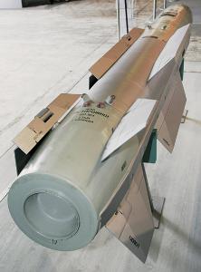 ②两组控制翼面,弹尾一组安装位置较有特点,距弹体底端有一定距离,在现役空射导弹中,这种布局较有特点,第二组安装在弹体中部,弹翼呈刀形,前缘较薄,而后逐渐加厚。