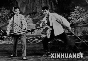 在大冶镇垌头村,“巧珍儿”可是个大名人儿,村里的老老少少、上上下下没有不喜欢她的。所以我们几乎没有费什么周折就找到了她家。我们人没进门,就见巧珍儿家的大白鹅昂着警觉的脖子在门口嘎嘎大叫,仿佛在怀疑我们的身份似的。可以说生活中的巧珍和《朝阳沟》中的巧珍就是一个人。她快人快语、泼辣大胆、敢爱敢恨。在人们印象中,巧珍倔强的个性,两个翘翘的羊角辫,都显得那么亲切、那么热情。当年的巧珍如今已是大娘模样,见我们“闯”进门,正低头肃花生的巧珍夫妇忙不迭的站进来了。了解我们此行的目的后,她不好意思的说:“没啥、没啥,老难看”。说完脸上一片绯红。提起来巧珍的生活才算打开了她的话匣子:她八岁时家里就给她订了一门亲事,丈夫叫李根松,十九岁时两人结了婚,一桶红薯面条,一斤棉花,一条被单就算办了事。几十年风风雨雨,她和丈夫相濡以沫,别看是娃娃亲,可两人感情好着咧!不久前丈夫从镇供销社退休了,两口子就和孩子们一起共享天伦之乐。