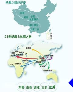 丝绸之路经济带战略涵盖东南亚经济整合、涵盖东北亚经济整合,并最终融合在一起通向欧洲,形成欧亚大陆经济整合的大趋势。21世纪海上丝绸之路经济带战略从海上联通欧亚非三个大陆和丝绸之路经济带战略形成一个海上、陆地的闭环。
