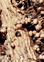 一个共生的的实例。根瘤菌存在于土壤中,是有鞭毛的杆菌。根瘤菌与豆科植物之间有一定的寄主特异性,但不十分严格,例如豌豆根瘤菌能与豌豆共生,也能与蚕豆共生,但不能与大豆共生。在整个共生阶段,根瘤菌被包围在寄主质膜所形成的侵入线中,在寄主内合成固氮酶。豆血红蛋白则系共生作用产物,具体讲,植物产生球蛋白,而血红素则由细菌合成。豆血红蛋白存在于植物细胞的液泡中,对氧具有很强的亲和力,因此对创造固氮作用所必须的厌氧条件是有利的。就这样细菌开始固氮。在植物体内细菌有赖于植物提供能量,而类菌体只能固氮而不能利用所固定的氮。所以豆科植物供给根瘤菌碳水化合物,根瘤菌供给植物氮素养料,从而形成互利共生关系。