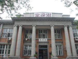 思源堂位于南开大学校园内中心花园的南侧,始建于1923年,1925年落成并投入使用。它是科学馆,也就是理科教学楼,在当时为全校最考究的一座建筑。整幢大楼具有西方古典主义建筑风格,共三层,底层半层“卧”入地下,即地下室。高台上的大门前是六根古罗马大石柱,门旁两盏大灯。灯盖朝天,造型别致;铜制灯架,闪闪发光,显得富丽堂皇。