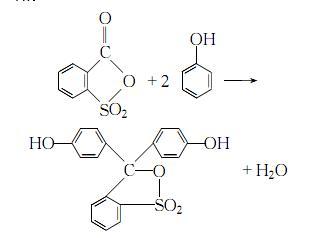 1.将邻磺基苯甲酸酐与苯酚共热熔化,加入无水氯化锌于135-140℃反应7h,然后将缩合物倒入热水中,用滤,用水洗涤固体,进一步用酸碱沉淀法提纯而得成品。