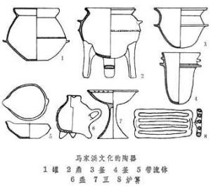 早期:为马家浜下层和罗家角第4层。陶器以灰黑陶和灰红陶为主,绳纹较多见,器形以釜为主。