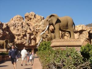 世界10大酒店之一,拥有338间房间的皇宫大酒店是太阳城的第四座酒店,也是最高级豪华、房价最昂贵的酒店,酒店外观的建筑设计与雕刻用野生动物作为题材,客房内家具上的浮雕,均以各种动物造型显示非洲的独特风情,小至文具铅笔等小物,没有一样不尽现非洲风格。