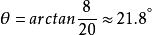 例如,假设当屋顶耗尽20英尺时,屋顶会下降8英尺。 屋顶与水平面形成一个角度θ,其中θ可以如下计算: