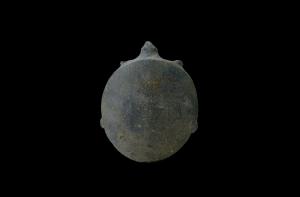 商周石鳖长10.8厘米,宽8.9厘米,厚2.7厘米,砂岩,体形肥硕,三角形头部前伸,四肢短小后缩。腹部扁平,全身打磨。造型质朴简洁。 | ![]() |