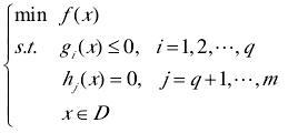 }是搜索空间, D中所有满足约束条件的解构成可行域S,即 S={x|