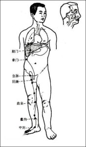 【主治】:①头痛,眩晕,目赤肿痛,口眼歪斜。②郁证,胁痛,腹胀,呃逆。③下肢痿痹,行路困难。④月经不调,崩漏,疝气,遗尿。⑤癫痫,小儿惊风。
