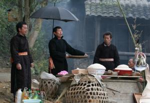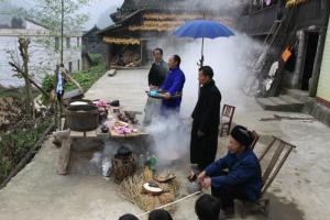 活动前主人要请已婚同时一定生育有两个男孩的两男两女在祭祀活动中为“祭师”的中间人,给天神谢物品,给来宾分发糯米饭。男的给男宾分发,女的给女宾分发,不允许混乱。