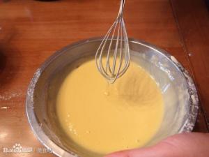 1、黄油切成小块,加入白糖拌匀,再加掸散的鸡蛋,搅拌成均匀的油蛋糖浆。