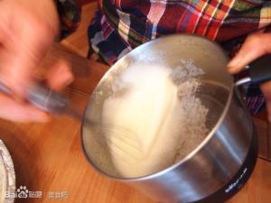 1.奶水加柠檬汁加沙拉油拌匀加低粉拌匀