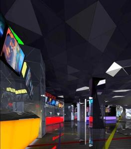 影院大堂宽敞而开阔,蓝色立柱醒目而耀眼,在立柱周围设有若干休息软椅。软椅较为宽大舒适,观众在等候时不会太过于劳累。在休息区在上方,有一块巨大的屏幕滚动播放正在热映和即将上映的影片预告片,观众能够比较方便直观的获取影片信息。影院拥有8个售票窗口,能够同时满足较多购票观众的需求,在一侧还有会员直通窗口,美嘉欢乐影城的会员可以不用排队,更加快速便捷的买到电影票。