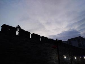 古崇宁县城,初建县时没有城墙,到了元代赤鲁不花为崇宁县令时才正式修筑城墙。明朝正德年间,增墙竣沟,墙高一丈一尺,周围长三里三分。前后共设炮台七座,城门五座。东为朝阳门,南为南熏门,西为西直门,北为北拱门。第五个城门名为觐圣门。古崇宁县城极具特色,城垣城垛都加有官帽沿;城内城外均有河流穿过,如此两次绕城而过的溪流,在川西县中不多见。