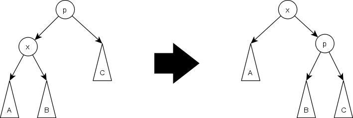 Zig-zag;当p不为根节点且x为左儿子而p为右儿子时进行,反之亦然。在这种情况下,先旋转p到x的位置,再旋转p到g的位置。