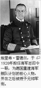 莱茵演习行动流程与结果德国水面舰队于1940年10月派出数艘装甲舰、重巡洋舰和伪装巡洋舰由北海进入大西洋攻击商船,在海上大有斩获,迫使英国作好战斗以迎击。1941年5月18日,德国海军发起莱茵演习行动(Operation Rheinübung),企图组织舰队夺得北大西洋的制海权并以刚刚开始服役的俾斯麦号战列舰吸引英国的主力舰,使其他德舰得以攻击缺乏护航战列舰的商船。此计划曾遭舰队司令刚瑟·力长斯(Günther Lütjens)的反对,他指出将此作战延到两艘战列巡洋舰(指的是沙恩霍斯特号和格奈森瑙号,它们曾在4月上旬受创,进入布雷斯特翻修,而皇家海军又于此港外布下多处雷区,使得出勤时间一延再延)做好准备再进行,但遭雷德尔驳回,他指出若是到夏季才开始执行将会失去天候和昼短夜长这两个有利条件;更重要的是,希特勒已在准备巴巴罗萨作战,陆军和空军的需求将为最优先,若不在海上取得惊人胜利,难使希特勒继续支持海军舰队。之后,在5月24日爆发了丹麦海峡海战,俾斯麦号和欧根亲王号击沉皇家海军的旧舰胡德号战列巡洋舰、重创威尔士亲王号战列舰,而在3天后,皇家海军派遣了大量军舰前往、搜索拦截俾斯麦号,并将其击沉。莱茵演习行动以德国海军的失败告终,使得希特勒对大型水面舰的兴致降至谷底,成了水面舰队和雷德尔的转折点,也显示皇家海军已开始集结舰队反击。到了11月,皇家海军也消灭了所有在外巡弋的德国伪装巡洋舰。