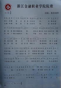 浙江金融职业学院院歌是在浙江银行学校校歌的基础上发展而来的,它保留了原校歌明快、奋进的旋律,秉承了其健康向上的精神实质,歌词既体现出高职大金融教育及学院生气勃勃的校园文化特色,又反映出广大学生为中国现代化建设求知识、炼能力、强素质而努力的精神风貌,激励着该院学生在知识经济中求索,在奋进中成长。