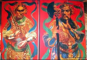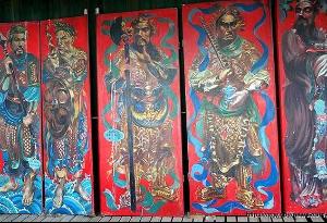 通常我们到了庙宇,看到相貌威武庄严的门神,大抵都是秦叔宝、尉迟恭,或有用哼哈二将、神茶、郁垒、韦驮、伽蓝,但你见过浓眉大眼鹰勾鼻的西洋脸孔,穿着中国武将服饰、手持中国兵器的门神吗?