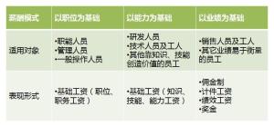 无论是哪一种薪酬模式,它们的不同只是所关注的侧重点不同,它的最终目的都是尽可能准确地测量、反映员工的绩效,保证分配的公平性,进而促进员工绩效的提升,这一点是相同的。岗位工资关注的是岗位的特征而忽略了人(任职者)的因素,能力工资关注的是任职者的资格,是工作的投入方面,绩效工资关注的是任职者在岗位上的产出。薪酬管理模式的选择依据是它是否可以较为准确地反映员工的实际贡献,以使工资能更准确地反映员工的绩效水平,给员工一种公平的感觉,提升员工的满意度,促进企业整体绩效的提升。
