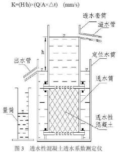 (5)试配检验。透水性混凝土拌合物比较干硬,一般采用VB稠度指标来衡量,在10~20s之内比较合适。所以初步计算配合比后,试拌测定拌合物的工作度,可初步验证配比设计是否合理。然后,在试验室内配制试块,按标准方法养护,测定28d强度,最后确定配比。