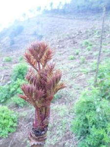 刺脑包,属野生植物,大部分生长在气候较寒的高海拔丛林里,人们普遍喜欢将其芽尖煎炒或凉拌食用。其味微苦,清热排毒,具有良好的药用价值。