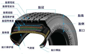 胎体较柔软,外胎面刚性较大,中间的帘线起到加强胎体强度和定型的作用,多加以金属丝提高轮胎的弹力性能。