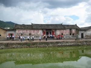 三是讲究配套。前面有一个半月形池塘,具有蓄水、养鱼、防火、防旱等作用。宽敞的门坪、四通八达的巷道满足了人们户外各项活动的需求;正中大屋上、中、下三堂和南、北厅,花厅等,则满足了合族议事、宴会、婚丧喜庆等活动的需要;各建筑单元卧室、厨房、天井等生活空间完美配套,通风、采光、排水等生存必需设施完善。