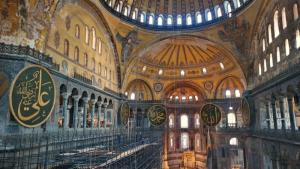 公元7世纪之后,阿拉伯半岛上出现新兴势力伊斯兰文明,接着十字军东征来到君士坦丁堡,但此时统治者已无力阻止联军与战争对城市的蹂躏。接着是土耳其人登场,东罗马帝国正式宣告结束。公元1453年,奥斯曼土耳其将君士坦丁堡改名为科斯坦丁尼耶,并将索菲亚大教堂改成阿雅索菲亚清真寺。