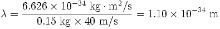 例如:投球手以40米每秒投出一个质量为0.15公斤的棒球。这个球的波长为