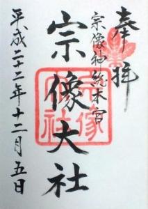 根据《日本书纪》的记载,“宗像三女神”因为天照大神与素戋鸣尊的誓约而生(详见词条宗像三女神),为了辅佐天孙(历代天皇)而降临在宗像,并治理这个地区,后来神功皇后在三韩征伐之前在这里祈祷海上安全,得到灵验,在这之后国家每年都派遣使节来此还愿。从此宗像三女神转而成为保佑航海安全的守护神。