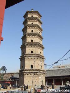 大觉寺门口,高耸着一座六角七层的古塔,这就是 万寿塔。据延津县志记载, 万寿塔始建于唐天宝年间,毁于明嘉靖二十八年(1549),又二年,知县李元春劝令士民重修,修了两层因财力不足而停工。隆庆三年(1569年),知县陈彝募捐续修,又未完成。至万历十一年(1583年),知县郝亦立再次施材续建,因郝奔丧,又未完成。直至万历十三年(1585年),才有知县张光宇捐俸银命匠合顶,并铸千余斤重的铜宝瓶(塔葫芦)置于塔顶,至此才算竣工。重修该塔自破土到完成, 共经历了三代皇帝、十五任知县,历时三十六年。现为省级文物保护单位。