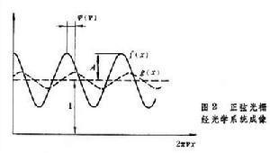 与研究电学系统相似,引入 傅里叶分析方法,考虑输入各种不同 空间频率的物函数,观察光学系统像面上输出情况,例如物是余弦形式的光栅 ,其中A是振幅或 调制度,因光学系统是线性的,所以像强度分布也是余弦形式,但它的振幅和 位相会受系统的影响,因此光栅的像可写成如图2所示。其中│T(v)│、嗞(v)分别表示系统引起的振幅衰减和相移。从图2可见, 正弦光栅经光学系统成像后,比原物相比反衬度降低,最高强度降低,最低强度升高,设T(v)满足0≤T(v)≤1。另外还会产生相移嗞(v)。原来亮线条的位置会向暗线条方向移动。当 嗞(v)=π时,亮线条移到原物暗线条位置,发生物和像中黑白位置互换现象。定义为系统的 光学传递函数(OTF)。其模|T(v)|称 调制传递函数(MTF), 位相嗞(v)称位相 传递函数(PTF)。T(v)是 空间频率v的函数,改变v可测得T(v)随v变化曲线,反映系统对各空间频率的传递情况。对T(v)=1即 零空间频率的图像信息,在系统中传递不受损失;而对那些T(v)=0的图像频率成分,会在像强度分布中消失。一般地,T(v)是 复数,图1b是嗞(v)=0的特例,此时传递函数是实函数。 光学传递函数(OTF)点扩展函数是一点光源经光学系统后所成的衍射斑分布的函数。它在空域表征光学系统的特性,传递函数在 频域表征系统的特性。实际上两者有简单关系,即点扩展函数的傅里叶变换就是光学系统的传递函数。点扩展函数与透镜的孔径函数有关, 传递函数也与孔径函数有关。事实上传递函数是孔径函数的 自相关函数。