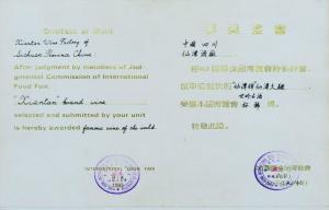 1989年,荣获“中国优质酒”称号。1991年,再次荣获“中国优质酒”称号。