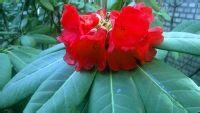 串珠杜鹃是灌木或小乔木,高约1-4米;幼枝嫩绿色,有薄层的蜡质及稀疏的腺体,无毛,老枝灰白色,树皮层状剥落。叶多密生于枝顶,革质,长圆状椭圆形或倒卵状椭圆形,长8-12.5厘米,宽3-5厘米,先端钝圆或急尖,有尖头,基部宽楔形或近于圆形,上面绿色,无毛,下面灰绿色,沿侧脉有由分枝毛组成的簇毛,中脉在上面平坦能见,在下面显著隆起,侧脉11-13对,在两面均平坦能见;叶柄圆柱状,长1.5-2厘米,无毛。