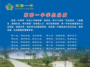 高密一中秉持“为四十岁做准备”的校训,致力于培养“志向高远、人格健全、基础扎实、特长明显”的卓越人才,我们的使命是:将一中学生塑造成为立足现实、放眼未来、砺志有为的精英群体,把高密一中建设成为学生向往、教师幸福、社会敬重的理想学校。