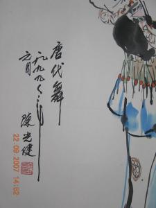 陈光健的作品,画风严谨而不呆滞,活泼而不俗气,长于用线,优美而有节奏。她的工笔人物创作努力扪触生活的心音,捕捉时代的脉搏。对人物审美,注意富有生活情趣和个性内涵。她的舞蹈人物画风流多姿用笔洒脱。她希望通过作品激起人们对生活的信心,对生命的爱。