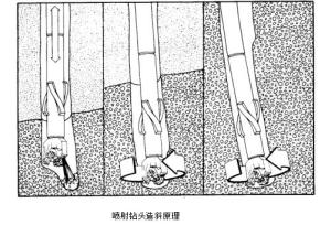 改变井眼轨迹的另一种有效的方法是喷射钻头。下如带有一个大喷嘴的钻头井底定向,使大喷嘴对准需的工具面。喷射时,钻井液的水力能量把井眼底部冲出一个口袋。钻具组合不旋转向前进入冲出的口袋1至2米。开始旋转,继续进行常规钻进,直到达到7至9米深并进行测量以评价造斜效果。如果需要再改变轨迹,再把喷射组合定向,重复喷射程序,一直进行到达到了要求的轨迹变化为止。