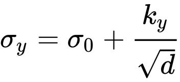 其中ky 是强化系数,根据材料的不同而有所不同。σo是描述材料运动开始的位错应力,或者是晶格位错运动的阻力,d是晶粒的直径,σy是屈服应力。