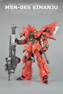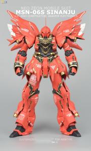 新安洲U.C.0093年的『夏亚的反乱』(Char’s Counter Attack)再次表明,即使是小撮Zeon残党依然具有危害到殖民地乃至整个地球圈安全的可能性,而残党的行为也从正规作战转变为危害性更大,牵涉面更广的恐怖作战!为此,联邦制订了志在于彻底消灭Zeon及其主要支撑理论的New Type的军力调整发展计划,即『UC计划』。MSN-06S Sinanju,即新安洲,是作为地球联邦宇宙军再编计划的一环,是由AE公司为计划所开发的第一部技术验证机型MS改造而成。与AE公司先前所开发的MSN-04Sazabi(沙扎比),RX-93 ν Gundam(牛高达)一样,MSN-06S Sinanju原型的驱动式内骨骼『可活动框架』(Movable Frame)的都采用了能够对驾驶员脑波产生反应的特殊纳米材料——『精神感应骨架』(Psycho Frame)。但更为进一步的则是,MSN-06S Sinanju是『全身精神感应骨架』(Full Psycho Frame)技术的验证机体,将带有精神感应技能的电脑晶片以金属离子形式铸入机体中的『可活动框架』(Movable Frame),从而大幅提高精神感应兵器的性能和机体反应速度。其范围大于MSN—04 Sazabi以及RX—93 νGundam,但仍未像RX—0 Unicorn Gundam般遍布全身。
