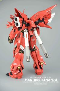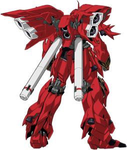 然而,MSN-06S Sinanju并没有搭载诸如浮游炮(funnel)之类的任何精神感应武器,其设计初衷在于突出MS单体的基本性能。背部安装有一对大型推进翼,全身各处也搭载了大量推进器和姿势调节喷嘴,整机的机动性能极其出众。