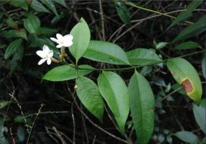 攀援灌木,长1.5-2米;枝灰色,无毛:小枝灰黄色,几无毛。叶薄膜质,无毛,长圆形至长圆状披针形,长6-14.5厘米,宽1.5-4厘米,基部楔形至宽楔形,顶端窄尾状,尾尖长1-1.5厘米;中脉在叶面略凹陷,在叶背凸起,侧脉纤细,很多,两面近扁平;叶柄长约5毫米,被微毛。