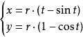 圆的渐开线平摆线参数方程 x=r(θ-sinθ) y=r(1-cosθ)r为圆的半径,θ是圆的半径所经过的角度(滚动角),当θ由0变到2π时,动点就画出了摆线的一支,称为一拱。