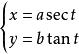 双曲线的参数方程 x=a secθ (正割) y=b tanθ a为实半轴长 b为虚半轴长 θ为参数