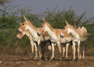 蒙古野驴印度亚种是大型有蹄类动物。外形似骡,体长可达260厘米,肩高约120厘米,尾长80厘米左右,体重约250千克。吻部稍细长,耳长而尖。尾细长,尖端毛较长,棕黄色。四肢刚劲有力,蹄比马小但略大于家驴。颈背具短鬃,颈的背侧、肩部、背部为浅黄棕色,背中央有一条棕褐色的背线延伸到尾的基部,颈下、胸部、体侧、腹部黄白色,与背侧毛色无明显的分界线。