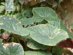 真菌病害,由葡萄孢菌引起的灰霉病症状:秋海棠叶片灰霉病经常发植株的下部,尤其是根茎处与基质接触的地方更容易感染病菌,被水浸润的病斑很快会扩散到整个叶整个植株,受害区域呈现坏死斑点,逐渐由褐色转变为黑色。当夜间温度较低、白天温度较高而且湿高时,病原孢子生长加快,受害的叶片上会长出灰绿色的霉状物。