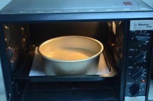 8、倒入模具中,巧克力隔水融化,加入鲜奶油少许混合均匀,淋在蛋糕表面装饰花纹,烤箱预热180度,烤箱中层烤四十分钟即可。